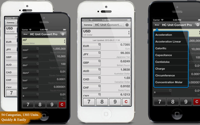 يمكن لمستخدمي أجهزة «آي فون» الاستعانة بتطبيق HC Unit Convert Pro المجاني، الذي يوفّر محركاً للتحويل بين الوحدات والعملات المختلفة بطريقة بسيطة واحترافية.