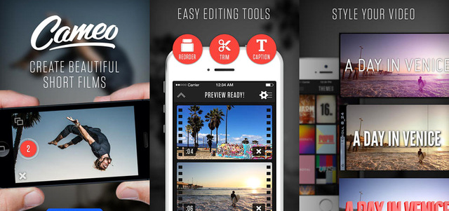 يمكن لمستخدمي أجهزة «آي فون» الاستعانة بتطبيق «Cameo» المجاني، الذي يسمح بإنشاء مقاطع فيديو احترافية يمكن التعديل عليها، كقص جزء منها أو إضافة تأثيرات عليها. التطبيق سهل الاستخدام، بحيث يختار المستخدم الصور أو الفيديو، ومن ثم يختار التأثيرات ليتم تطبيقها مباشرة، وبعد الانتهاء يمكن مشاركة المقطع الناتج.