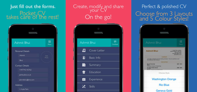 يمكن لمستخدمي أجهزة «آي فون» الاستفادة من تطبيق Pocket CV الذي يسمح بإنشاء سيرة ذاتية احترافية بكل سهولة، ومن خلال الهاتف الذكي مباشرةً.