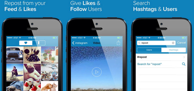 يمكن لمستخدمي «إنستغرام» الاستعانة بتطبيق Repost for Instagram المجاني المتوافر لأجهزة «آي فون» و«أندرويد»، الذي يسمح بإعادة مشاركة الصور.