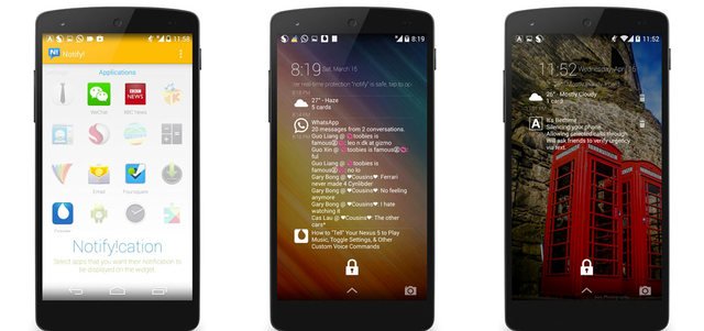 بعد تشغيل التطبيق يتوجه المستخدم إلى نافذة Notify cation ويحدد التطبيقات التي يمكن أن تعرض تنبيهاتها في شاشة القفل، ويمكن التحكم في حجم الخط وطريقة عرض هذه التنبيهات أيضاً.