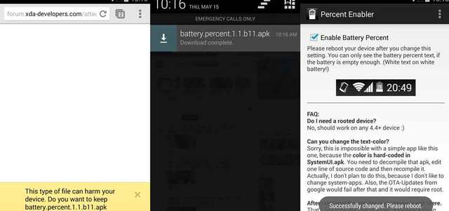 Battery Percent for KitKat.. لعرض النسبة المئوية للشحن