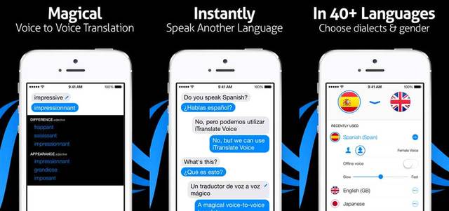 لذا يمكن لمستخدمي أجهزة «آي فون» تجربة تطبيق iTranslate Voice الذي يوفر أداة للترجمة صوتياً من خلال التكلم، إذ ينطق المستخدم الكلمة أو الجملة التي يرغب في ترجمتها ويحدد اللغة، لتتم الترجمة فوراً إلى اللغة المطلوبة بشكل كتابي وصوتي.