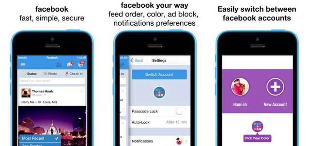 كما يقدم التطبيق العديد من الميزات والإمكانات التي يقدمها تطبيق «فيس بوك» الرسمي، إضافة إلى إمكانية تغيير الألوان الافتراضية لكل حساب، حسب ذوق المستخدم أو وضع كلمة مرور لفتح التطبيق، وهو متوافر بشكل مجاني على متجر «أبل».