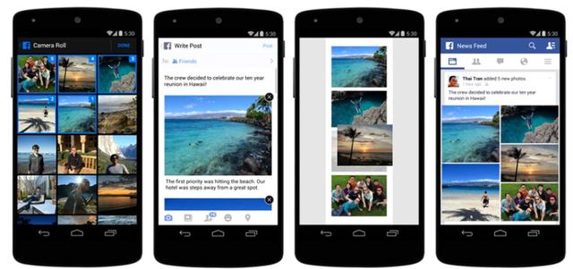 أعلنت شبكة التواصل الاجتماعي «فيس بوك» عن إطلاق تحديث جديد لتطبيقها على هواتف «أندرويد» و«آي فون» يُقدّم طريقة جديدة لمشاركة الصور المُتعددة وتنظيمها.