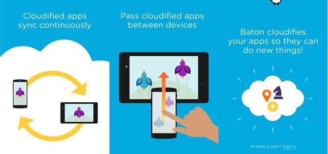 فتطبيق Baton المجاني يسمح للمستخدم بمُزامنة أكثر من جهاز في الوقت نفسه، وبالتالي يمكن الحصول على الملفات والتطبيقات ذاتها على أكثر من جهاز مع إمكانية متابعة استخدام أي تطبيق على أي جهاز آخر.
