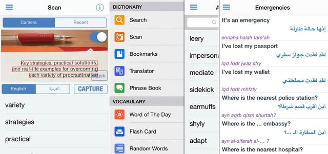 يقدم تطبيق Arabic Dictionary المتوافر على متجر «أبل» للتطبيقات، إمكانية ترجمة المصطلحات والكلمات من العربية إلى الإنجليزية وبالعكس، كما يقدم العديد من الخيارات مثل البحث المباشر والسريع، لتظهر الكلمات المشابهة لما يقوم المستخدم بكتابته في الوقت الحقيقي للكتابة.