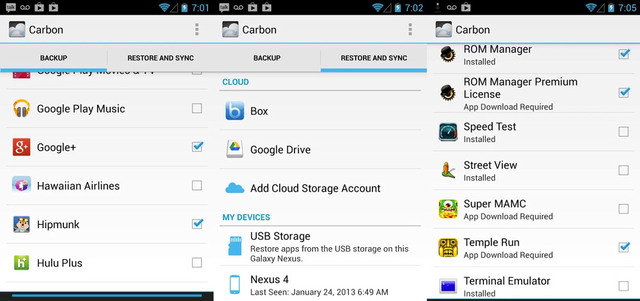 ويمكن للمستخدم تجربة تطبيق Helium الذي يسمح بأخذ نسخة احتياطية من جميع البيانات الموجودة على الجهاز وتخزينها على الجهاز نفسه أو سحابياً لاستعادتها في وقت لاحق أو استخدامها في جهاز آخر. ويحتاج المستخدم إلى تثبيت التطبيق وتحديد أجزاء النظام التي يرغب في حفظها، إضافة إلى بيانات التطبيقات أيضاً ليحفظها التطبيق ويضغط مساحتها لتكون جاهزة في أي وقت لاستعادتها باستخدام التطبيق ذاته.