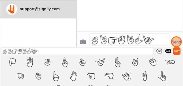 ويعد تطبيق Signily لوحة مفاتيح، تتيح للمستخدم إمكانية استخدام لغة الإشارة عن طريق هاتفه، بحيث يتم تبديل لوحة المفاتيح الرئيسة في هذه اللوحة التي لا تحتوي إلا على رموز تعبيرية، كل رمز منها يعني كلمة أو جملة، وتراكبها مع بعضها يؤدي بالنهاية إلى إتمام محادثة مع الآخرين.