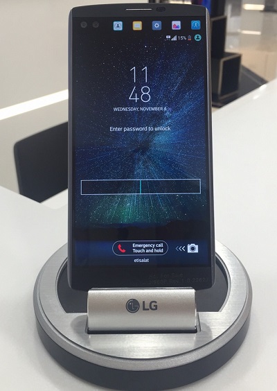 وأفاد رئيس مبيعات وحدة الأجهزة المحمولة لشركة "ال جي" في الشرق الأوسط، محمد اليسير، أن "إل جي في10، LG V10"، الذي يعد الأول في سلسلة جديدة من الهواتف الذكية العاملة بنظام التشغيل أندرويد من الشركة الكورية الجنوبية، يحمل شاشة ثانية منفصلة تستحوذ على مساحة صغيرة بجوار الكاميرتين الأماميتين، أعلى شاشته الرئيسية التي تأتي بقياس 5.7 بوصات.