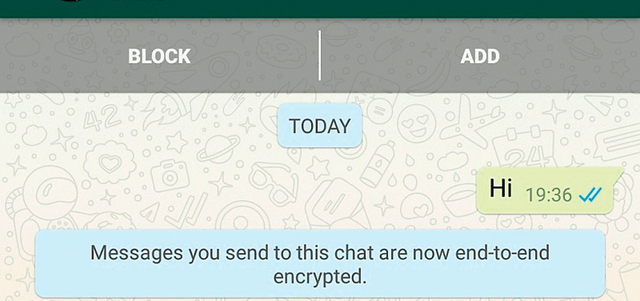 وتظهر الخدمة رسالة جديدة داخل نافذة الدردشة تؤكد أن هذه الدردشة تم تشفيرها بواسطة «تشفير نهاية إلى نهاية»، وتستخدم «واتس أب» خدمة TextSecure من منظمة Open Whisper Systems لتشفير الرسائل على «أندرويد» منذ عام 2014، وتعمل الشركة على أن تكون أكثر شفافية حول تنفيذ تشفير نهاية إلى نهاية ضمن التطبيق.