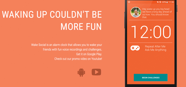 لكن مع تطبيق Wake Social المتوافر لمستخدمي «أندرويد»، يمكن للمستخدم الاستيقاظ بطريقة اجتماعية وممتعة وغير تقليدية، إذ يمكن للمستخدم طلب المساعدة على الاستيقاظ من الأصدقاء، بحيث يترك صديق المستخدم تسجيلات صوتية له مع تحدّيات تجبر المستخدم على النهوض من الفراش. ويوفّر التطبيق مجموعة من التحديات التي يمكن الاختيار منها لإجبار المستخدم على الاستيقاظ، مثل التقاط صورة «باركود» لأي منتج موجود لدى المستخدم، أو تكرار جملة محددة أو الإجابة على سؤال أرسله صديق المستخدم، وبعد إيقاف التنبيه يمكن للمستخدم مشاركة نشاطاته داخل التطبيق.