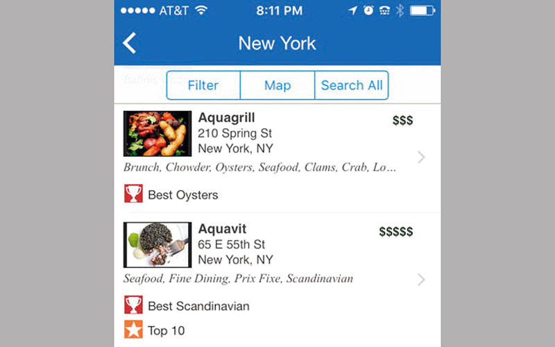 ويحدد أشهر 10 مطاعم في أكثر من 50 مدينة من المدن الأميركية الكبرى، إضافة إلى 50 مدينة عالمية أخرى، ومئات المطاعم المتخصصة في الوجبات المختلفة.