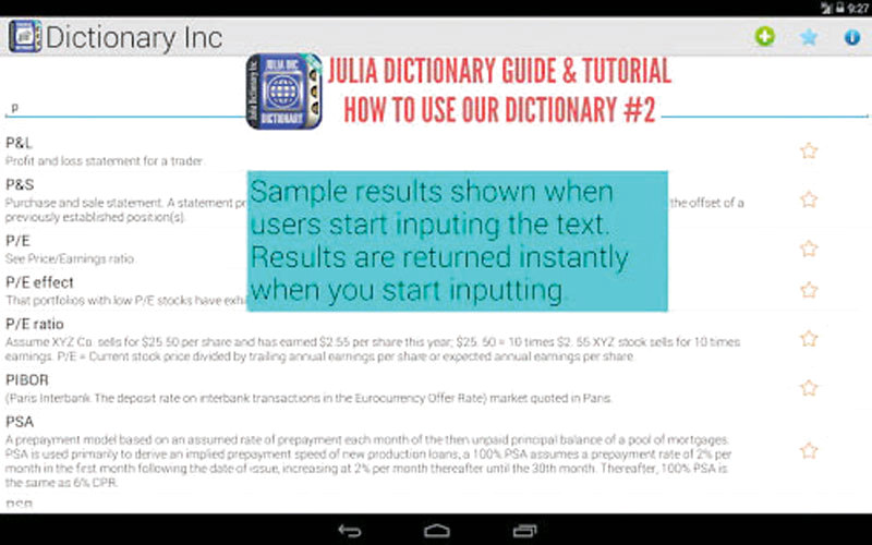 كما يتيح التطبيق ميزة البحث عن المصطلحات غير المفهومة عبر استخدام لوحة المفاتيح.