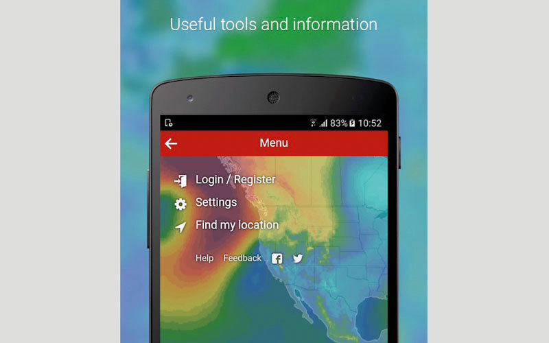 يعرض التطبيق توقعات الطقس بسرعة وكفاءة ودقة كبيرة، نظراً لأنه مخصص لفئة من أكثر الناس اهتماماً بالظروف الجوية المتغيرة، مثل الطيارين، والبحارين، والصيادين، ومحبي الرياضات المائية.