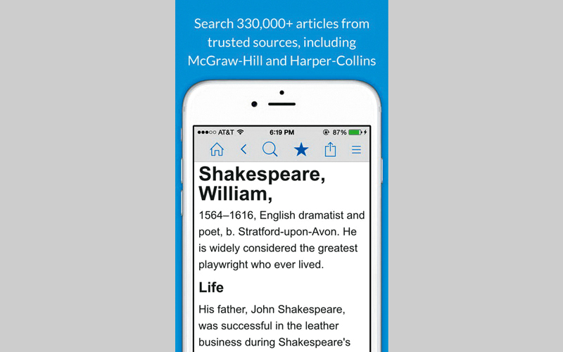 ويمنح التطبيق مستخدمه روابط لأكثر من 330 ألف مقالة متنوعة في كل مجالات العلوم والآداب، ونحو 77 ألف مادة صوتية منطوقة باللهجتين البريطانية والأميركية إلى جانب 24 ألف صورة. وتتميز المصادر التي يستمد منها التطبيق معلوماته بالموثوقية، حيث تنتمي لمحتوى خاص بجامعات عالمية شهيرة، كـ«جامعة كمبريدج» و«جامعة كولومبيا»، وتنضوي تحت أكثر من منصة تتمتع بتقييم عالٍ وبآلاف المراجعات الموثوقة. ويتضمن التطبيق معلومات في مجالات متعددة، منها: العلوم والتاريخ والطبيعة والتكنولوجيا والفن والمال والأعمال، والحيوانات والنباتات، إلى جانب الثقافة والأطعمة والموسيقى، وغيرها الكثير. كما تتضمن الصور المعروضة عبر التطبيق رسوماً بيانية. ويسمح التطبيق لمستخدمه بحفظ عدد غير محدود من الإشارات المرجعية الخاصة بالمقالات المختلفة، ويتميز بواجهة مستخدم بسيطة.