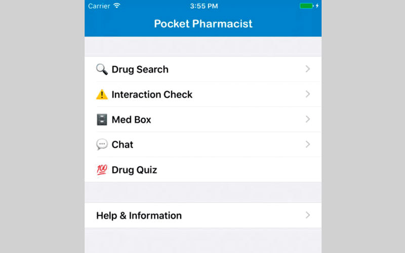 ويقدم التطبيق معلومات موثوقة حول ما يزيد على 1700 عقار طبي، كما يتيح البحث تلقائياً في التأثيرات الجانبية والتفاعلات الدوائية لكل دواء مع الأدوية الأخرى، فضلاً عن تقديمه الاحتياطات الواجب على المريض اتخاذها، ونوعية الدواء المناسب لعمره. ويتضمن التطبيق ملمح البحث الذي يسمح للمستخم بالبحث عن الدواء بالاسم أو بالفئة التي ينتمي إليها، كما يستطيع مستخدم التطبيق تشارك ملفه الصحي كاملاً مع مقدمي الرعاية الصحية عبر البريد الإلكتروني.