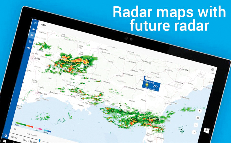 ويمكن لمستخدم التطبيق أن يقوم بإضفاء طابع شخصي على تنبيهات الطقس، خصوصاً عند توقع ظروف الطقس القاسية. كما يتيح التطبيق له التعرف على وقت حدوث الأعاصير والعواصف القوية.