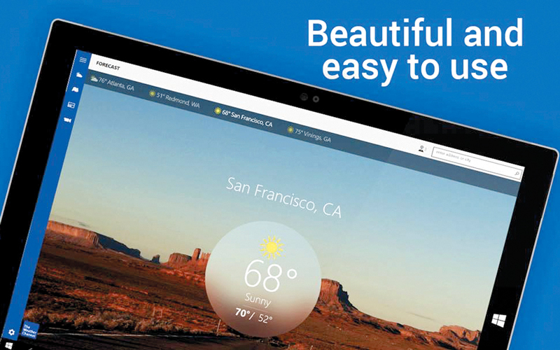 ويساعد التطبيق مستخدمه في اتخاذ القرارات التي تتأثر بحالة الطقس بناء على معلومات موثوقة، حيث يستطيع التنبؤ بحالة الطقس ساعة بساعة حتى 15 يوماً تالية بالدرجات المئوية والفهرنهايتية.