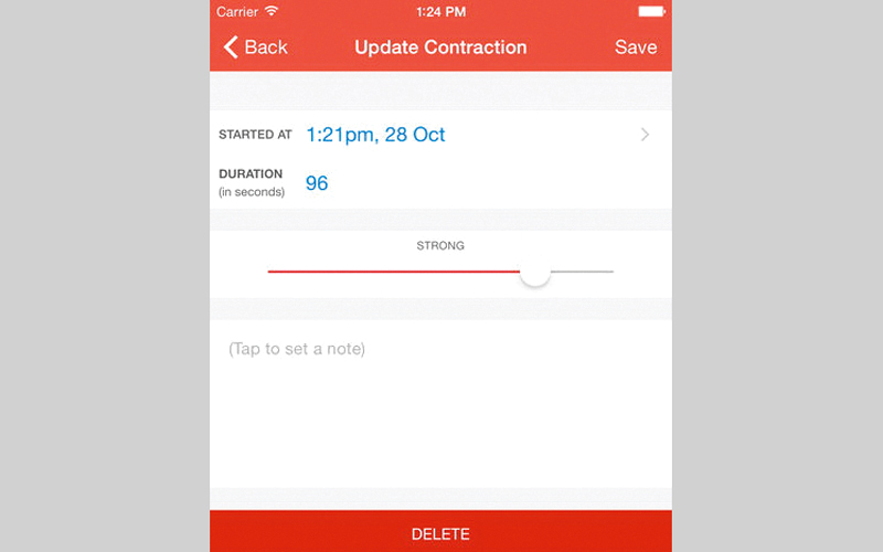 ويقوم التطبيق بمساعدة السيدات على تقدير الموعد الصحيح لعملية الولادة، حيث يعتمد على تسجيل عدد الانقباضات التي تشعر بها قبيل الولادة ومدة كل منها، وبناءً على المعلومات المتراكمة يحدد لها التطبيق لحظة الذهاب للمستشفى.
