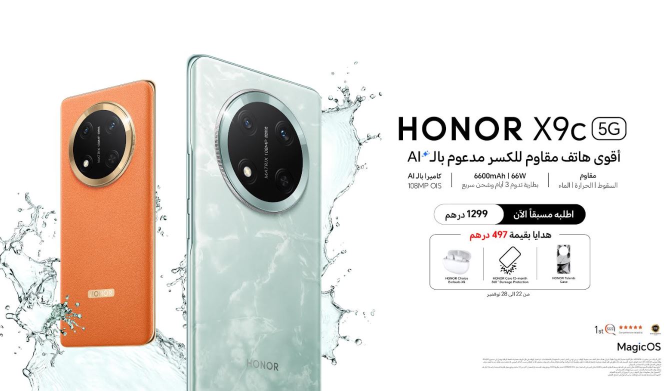 أعلنت HONOR العلامة التجارية الرائدة في مجال التكنولوجيا عن فتح باب الطلب المسبق على أحدث إضافاتها المميزة في سلسلة HONOR X، هاتف HONOR X9c عالي المتانة أقوى هاتف مقاوم للكسر والمقاوم للماء والغبار والظروف القاسية، كما يأتي مزوداً بميزات الذكاء الاصطناعي المتقدمة.