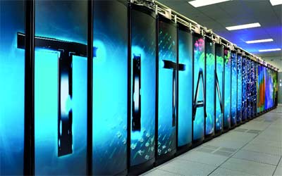 سيكون بإمكان العلماء من جميع التخصصات الاستفادة من جهاز واحد عملاق، إذ يضع خبراء أميركيون هذه الأيام اللمسات الأخيرة لتجهيز كمبيوتر عملاق والأكثر تعقيداً من نوعه. ويفتح الباب للباحثين في شتى المجالات للقيام بأبحاثهم واستغلال القدرات الهائلة للكمبيوتر «تيتان». ويقوم مختبر «أوك ريدج الوطني» في ولاية تينسي الأميركية، بتشغيله بالتعاون مع خبراء آخرين. وصمم الجهاز ليكون أحد أسرع جهازين في العالم، إذ بإمكانه أن يقوم بنحو 20000 تريليون عملية حسابية في الثانية.