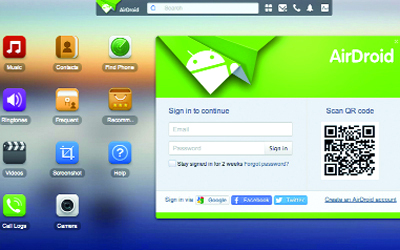 كثيراً ما يرغب مستخدمو نظام «أندرويد» باستخدام أجهزتهم عن طريق الحاسب من دون وصل الهاتف إليه، لقراءة الرسائل أو الاستماع إلى الموسيقى أو استعراض الملفات. تطبيق AirDroid يسمح للمستخدم بأداء هذه الأمور بكل سهولة، إذ يحتاج المستخدم إلى تثبيت التطبيق على الهاتف، وإنشاء حساب عن طريقه، بعدها يتم الدخول إلى موقع التطبيق web.airdroid.com وتسجيل الدخول عن طريق الحساب نفسه، ليظهر سطح مكتب افتراضي يحوي على أيقونات للوصول السريع مثل قراءة الرسائل، أو استعراض الصور وغيرها.