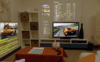 وأشارت إلى أن نظامها يوفر إمكانية عرض صفحات الإنترنت على أسطح عدة في الغرفة، وتعديل أبعاد العرض الخاصة به لتتناسب مع الأجسام الموجودة، ويستطيع المُستخدم التحكم بالمُتصفح بشكل طبيعي.