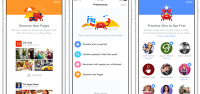أعلنت «فيس بوك» عن ميزة News Feed Preferences التي تُتيح إمكانية تخصيص بعض النقاط التي تُحسن من ظهور المنشورات من الأشخاص والصفحات التي يهتم بها المستخدم أكثر من غيرها، إذ يمكن للمستخدم الذهاب إلى قائمة More الموجودة في تطبيق «فيس بوك» على iOS بتحديثه الأخير، ومن ثم الضغط على خيار News Feed Preferences الموجود أسفل خيار Settings.