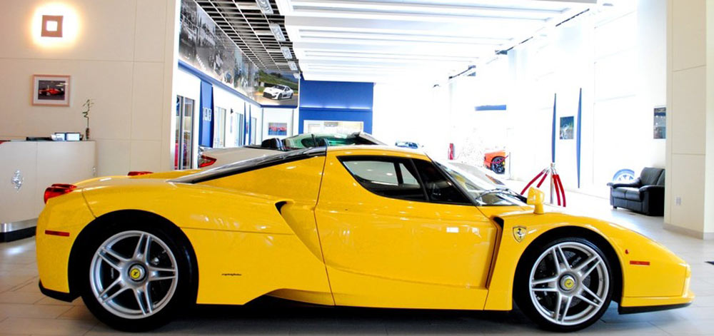 عُرضت سيارة نادرة من نوع فيراري انزو صفراء اللون موديل 2003 للبيع في معرض فيراري مازيراتي للسيارات في الولايات المتحدة الأمريكية بسعر 2,795,000 دولار.