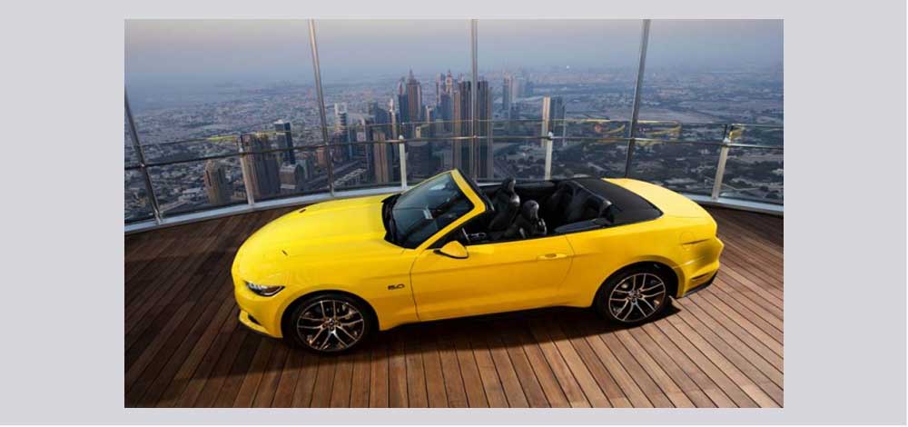 وتم نشر مقطع الفيديو المشوّق، على موقع اليوتيوب، لأحدث طراز من موستانج أصفر اللون لعام 2015 وذلك في الطابق 112 من ناطحة السحاب الأشهر في العالم.