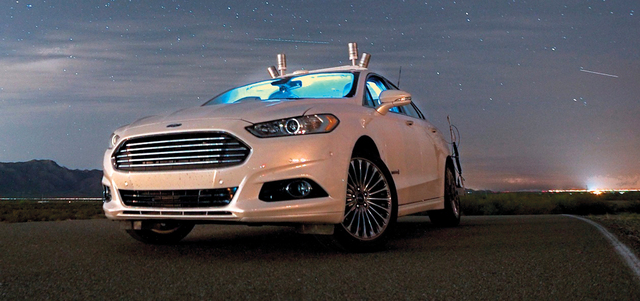 وخلال الاختبار الليلي في الصحراء، ارتدى مهندسو «فورد» نظارات الرؤية الليلية لمراقبة سيارة «فيوجن» من الداخل والخارج، حيث تمكنوا من رصد أداء «ليدار» على شكل شبكة من أشعة الليزر تحت الحمراء حول السيارة أثناء سيرها. يشار إلى أن أجهزة استشعار «ليـدار» تصدر 2.8 مليون نبضة ليزرية بالثانية لمسح البيئة المحيطة بالسيارة.