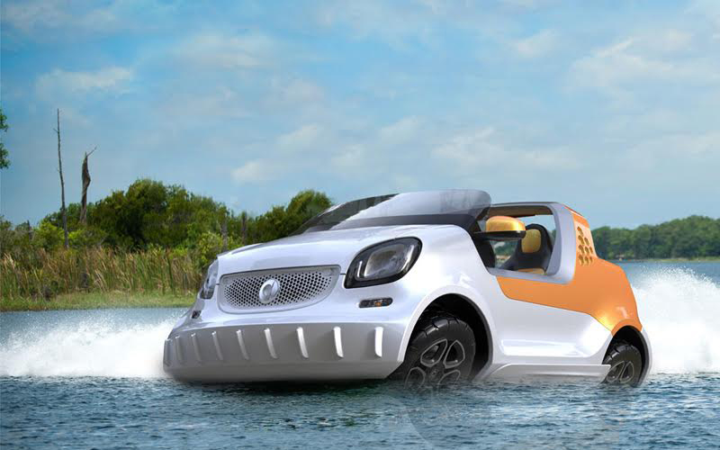 تنتقل "سمارت" الصيف المقبل، إلى خوض تحدٍ جديد، وذلك مع إطلاق نسخة تجريبية من "فورسي سمارت" المركبة البرمائية الأولى بتاريخ الشركة التابعة لمجموعة ديملير العالمية، تتمتع بالبنية الجينية ذاتها لديناميكية "سمارت" سيارة المدن الشهيرة ذات المقصورة التي تتسع لشخصين، مع القدرة على قيادتها في المجاري المائية والبحار.