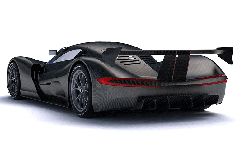 وتتمتع السيارة بتصميم عدائي يعكس هويتها السوبر رياضية، مع هيكل مصنع بالكامل من ألياف الكربون ذات المظهر الشفاف، وتمتاز بمقدمة عريضة ومسطحة، في حين يستقر جناح ضخم على صعيد الخلفية، فضلاً عن حارث سفلي كبير الحجم، وأبواب تداخل في قسمها العلوي مع خطوط السقف.