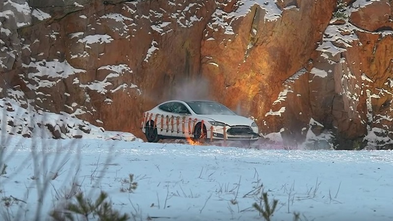 مالك لسيارة تسلا يُفجرها بـ30 كيلو من الديناميت !