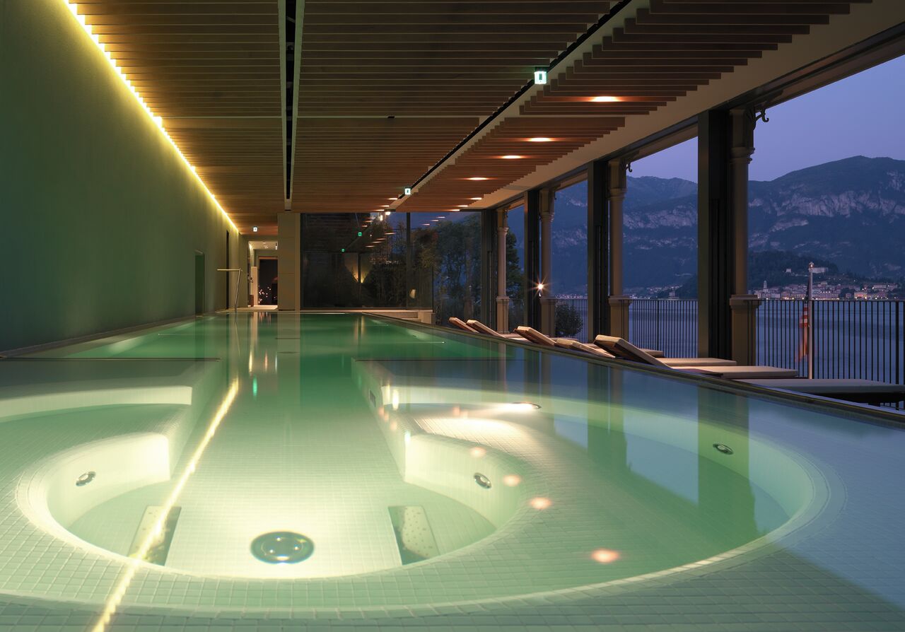 وتواجه صالة الاسترخاء التي تقع في أخر حوض السباحة تواجه شبابيك عملاقة لخلق الشعور التشمس في الهواء الطلق. هنا يقدم للضيوف إطلالة لا مثيل لها من بحيرة كومو لبدء أو إكمال تجربتهم في T سبا.