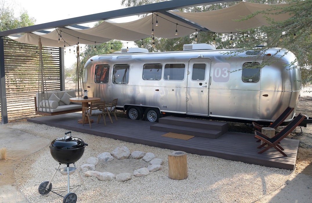 ويمتد المنتجع الذي تطوره شركة مدن العقارية بالتعاون مع دائرة البلديات والنقل في مدينة المرفأ بمنطقة الظفرة، على مساحة 154 هكتار، ويتميز باعتماده مفهوم العودة للتواصل مع الطبيعة، وهو موقع التخييم الوحيد في الإمارات الذي يتواجد داخل محمية طبيعية، حيث يتيح لزواره الإقامة في "كرافانات" وكبائن مفروشة ومجهزة بكافة مستلزمات الإقامة والضيافة، مع إمكانية اشعال نار للتدفئة والشواء. وفق ما أوضح القائمون على المكان خلال الجولة الإعلامية التي تم تنظيمها أول من أمس، الأثنين، بحضور مدير إدارة التنفيذ في شركة مدن العقارية أحمد الشيخ الزعابي، ومدير إدارة التخطيط العمراني في دائرة البلديات والنقل حميد الكعبي.