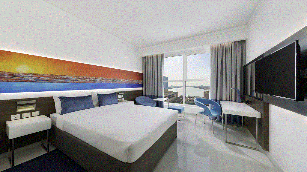 ويضم فندق الثلاث نجوم 204 غرف تتضمن غرفاً عائليةً متصلة وأسرّة من قياس كوين وغرفاً يسهل الوصول إليها من قبل الضيوف الذين يستخدمون الكراسي المتحركة. وتتمتع كلّ غرفة بإطلالة ساحرة إمّا على الخور أو على الجبل، بالإضافة إلى اتصال مجاني بشبكة الإنترنت اللاسلكي WI-FI وشاشة تلفاز LCD وثلاجة صغيرة. كما يضم الفندق مرافق أخرى من بينها حوض سباحة على السطح ونادٍ للياقة البدنية وشاطئ خاص بالقرب من الفندق.