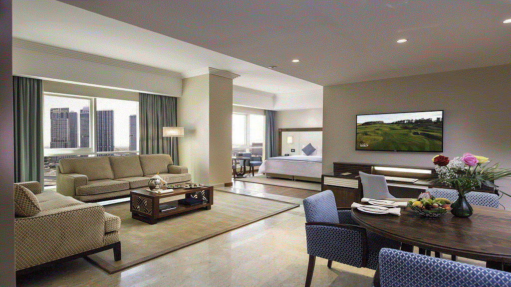 ويضم الفندق إجمالاً 369 غرفة وجناح بطراز "آرت ديكو"، إلى جانب الغرف المزدوجة والملكية، حيث يستعدّ الفندق لاستقبال ضيوفه ضمن 252 غرفة ملكية و72 غرفة مزدوجة و45 جناح فاخر، وتتميز جميع الغرف بتقنيات تكييف الهواء وشبكة إنترنت لاسلكية عالية السرعة وخدمات ذات جودة عالية على مدار اليوم، بالإضافة لشاشة تلفاز مسطحة وخزنة أمانات شخصية وبراد صغير ومكواة وآلة تحضير القهوة في الغرفة ولوح إلكتروني لقياس الوزن، كما تم تجهيز الحمامات بكل متطلبات الإقامة الفاخرة.