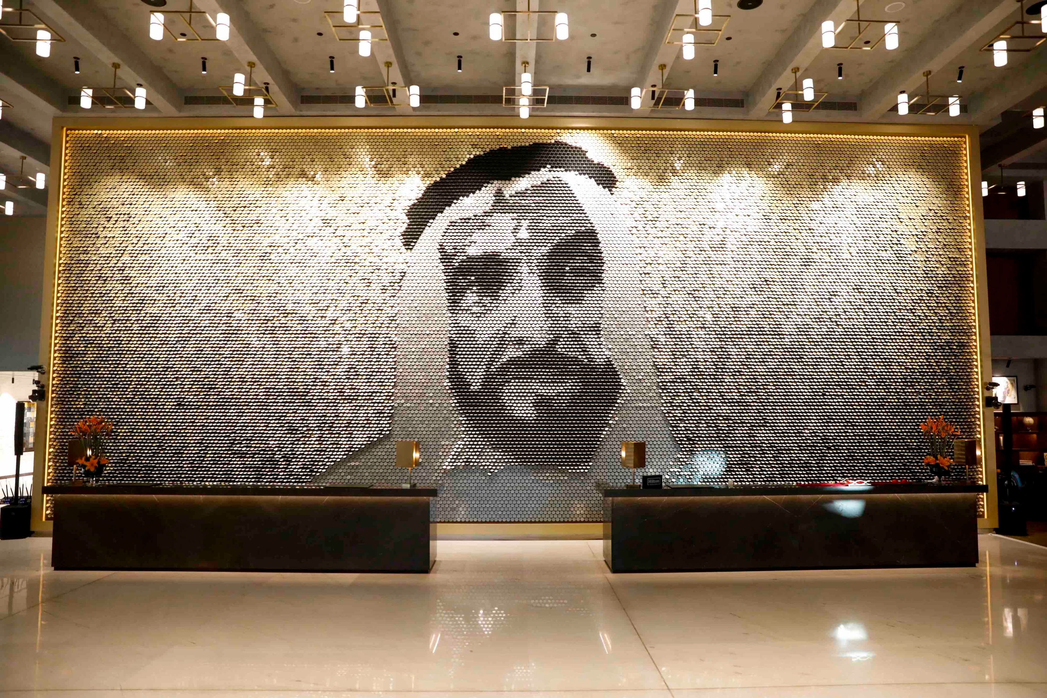 يتزيّن الفندق ذو الخمس نجوم بجدارية هي الأولى من نوعها للمغفور له الشيخ زايد بن سلطان آل نهيان، وتعتبر هذه الجدارية أول عمل فني من نوعه في الإمارات العربية المتحدة من وحي مفهوم "الأناقة الصناعية"، وهو يحمل توقيع استوديو جايلز ميلر الواقع مقره في لندن، وتمتد التحفة الفنية على ارتفاع 15 متراً في ردهة الاستقبال، وقد تم تصميمها من أكثر من 29 ألف قرصٍ عاكسٍ للضوء وموزعٍ على لوح مسطح من زوايا متنوعة، وقد عمل فريق مختص من الفنانين على تركيب جميع الأقراص على هيكل الدعم المصمم خصيصاً للجدارية خلال ثلاثة أسابيع.