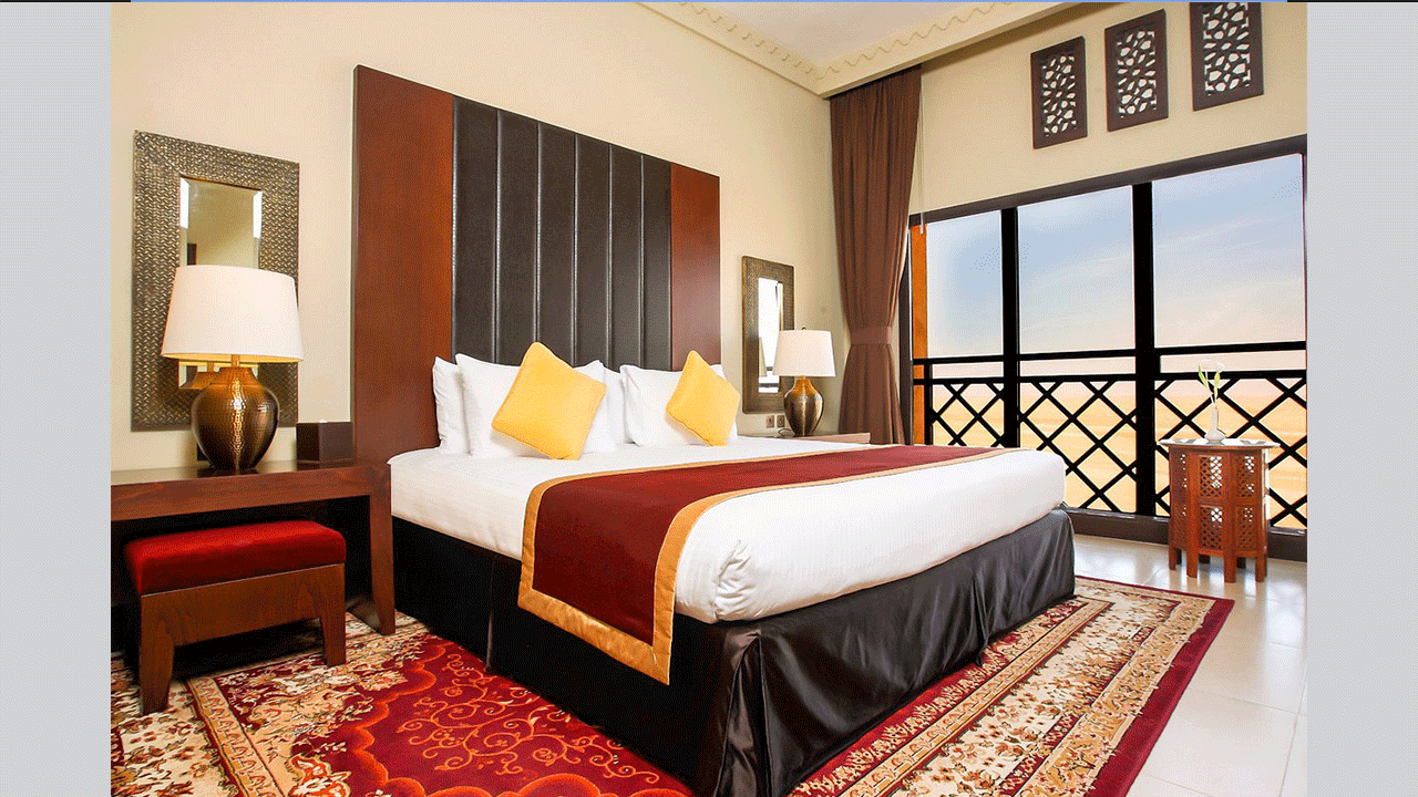 يوفر الفندق إطلالات بانورامية على صحراء الربع الخالي من المسبح الضخم ومن التراس المزود بكراسي التشمس. كما يوفر المنتجع غرفاً فسيحة مجهزة تجهيزاً جيداً وتتميز بديكوراتها عربية الطراز.
